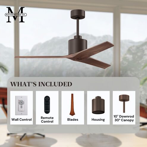 Designed by Stephen Katz, the Mollywood 52″ Ceiling Fan by Matthews Fan Co blends sculptural form with high-performance engineering. Featuring solid walnut tone wood blades and a rich textured bronze finish, this three-blade fan delivers a bold architectural presence while maintaining warm, organic appeal.
